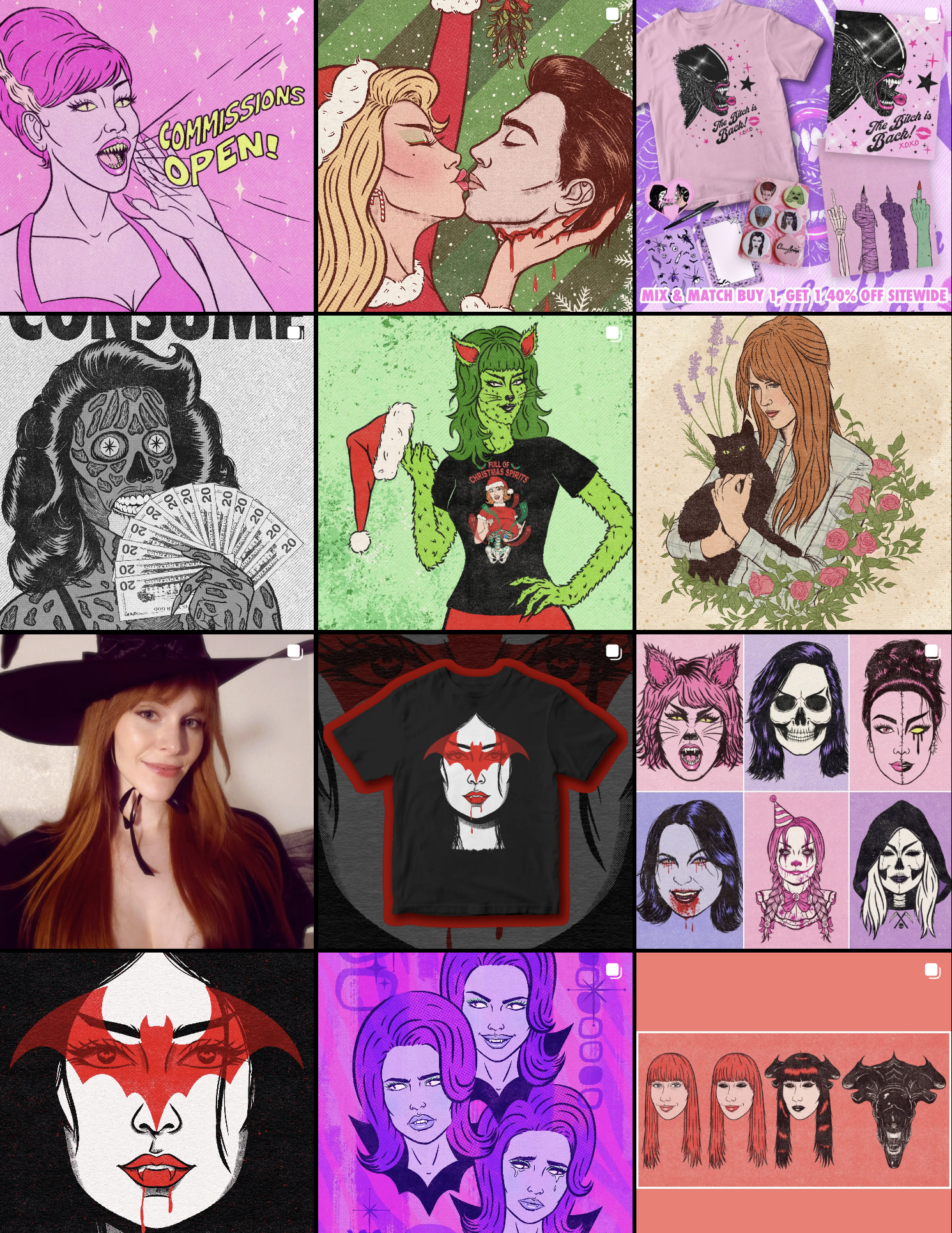 Driven to push her artistic boundaries, Jenny thrives on projects that challenge her and take her outside of her comfort zone. Whether collaborating with global brands or creating custom work for independent creators, she continues to deliver bold, captivating art that resonates with fans of the spooky, vintage, and uniquely stylish.